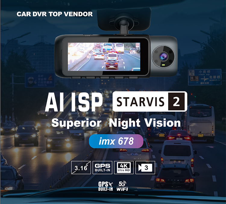 4K星光夜视记录仪:采用4K AI ISP技术,可以全彩实时成像,亮度提升30%,不能“看得见”,更能“看得清”;配备索尼旗舰级IMX678图像传感器,支持星光级夜视;搭配3.16英寸屏,可视角度160°更大广角;支持3录摄像头,同样支持WiFi 6 和GPS ,内置G-sensor重力传感器;前置ADAS智能驾驶辅助系统(可选),以及BSD盲区监测和DMS疲劳驾驶定制;